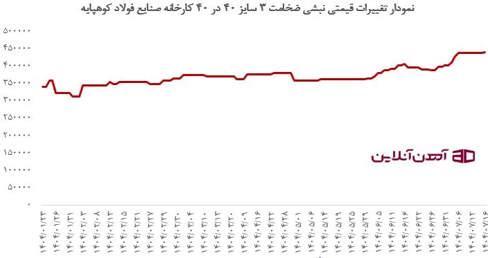 نمودار تغییرات قیمتی نبشی ضخامت 3 سایز 40 در 40 کارخانه صنایع فولاد کوهپایه